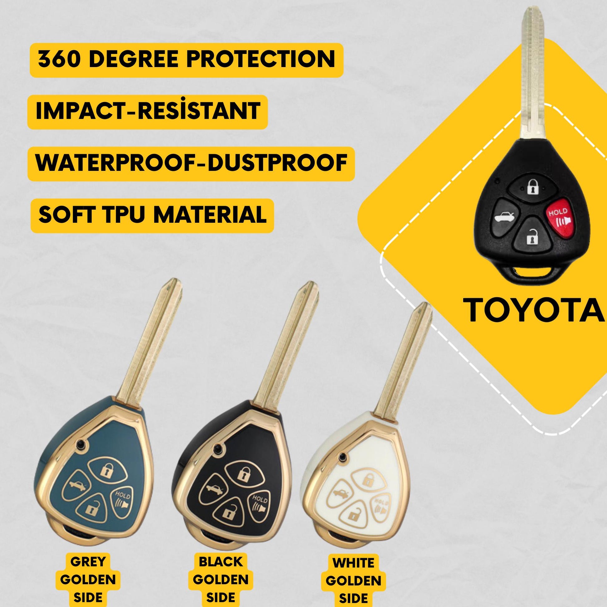 TOYOTA 4-Button Key Fob Cover for Avalon, Corolla, Matrix, Venza - Tpu Remote Case
