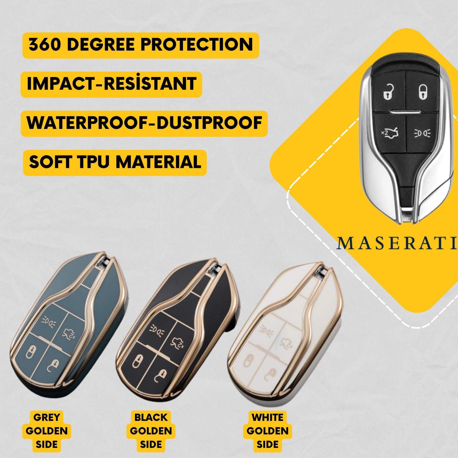 MASERATI 4-Button Key Fob Cover for Quattroporte, Ghibli - Tpu Smart Key Case